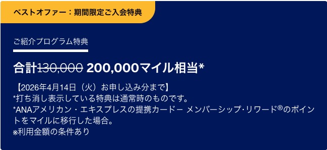 最大で合計200,000マイル相当のポイントを獲得することができます。