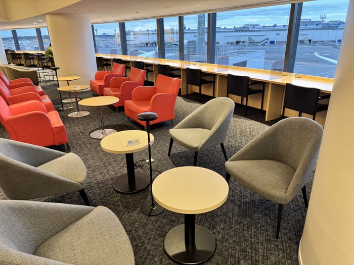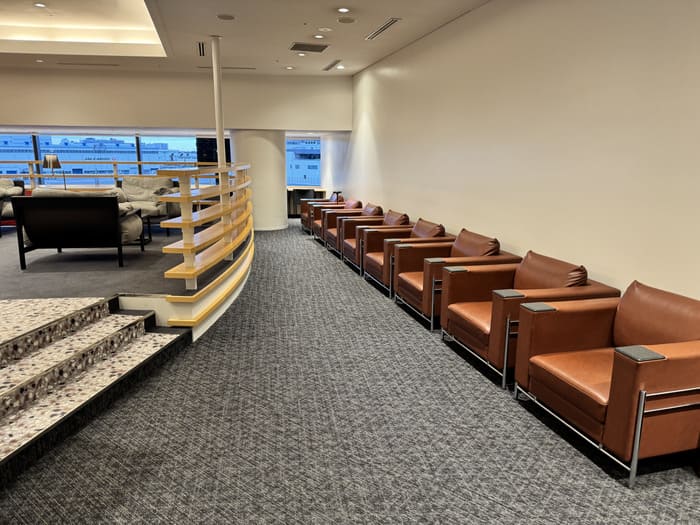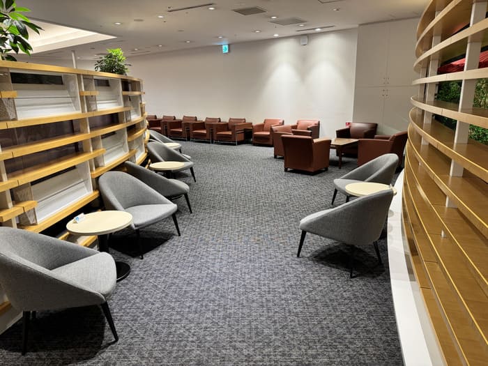 ラウンジ全体は落ち着いたトーンでまとめられており、ビジネス利用にも観光前のひと休みにも適しています。静かで落ち着いた空間なので、読書やPC作業、軽い食事などをしながらフライトまでの時間を快適に過ごせます。