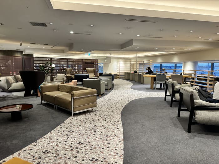 ラウンジは第1サテライト先端、11〜18番搭乗口付近にあります。搭乗口によっては移動時間がかかるため、搭乗ゲートとの距離を考慮して余裕あるスケジュールを立てておきましょう。