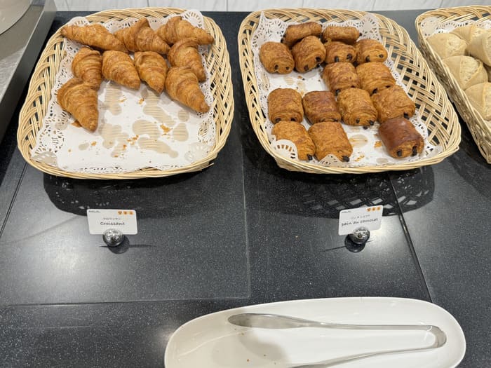 焼き立てのように香ばしいクロワッサンやチョコデニッシュなど、パン類も豊富です。