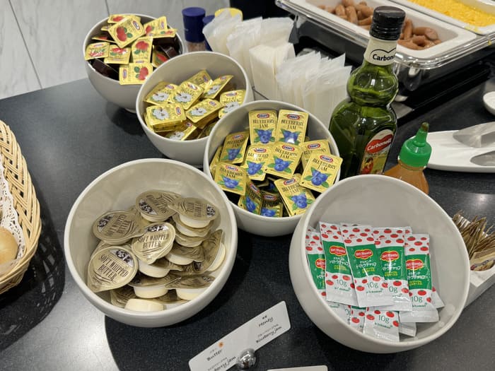 定番のストロベリージャムやブルーベリージャム、はちみつなど、パンに合わせられる調味料も充実。
