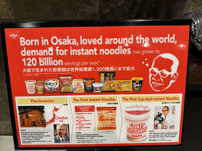 大阪で誕生した即席麺は今や世界中で愛される存在。こんな解説パネルまで展示されています。