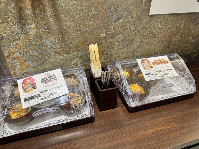 NARITA PREMIER LOUNGE には、ちょっと意外な「おまけの楽しみ」として、日清食品の即席麺が用意されています。
