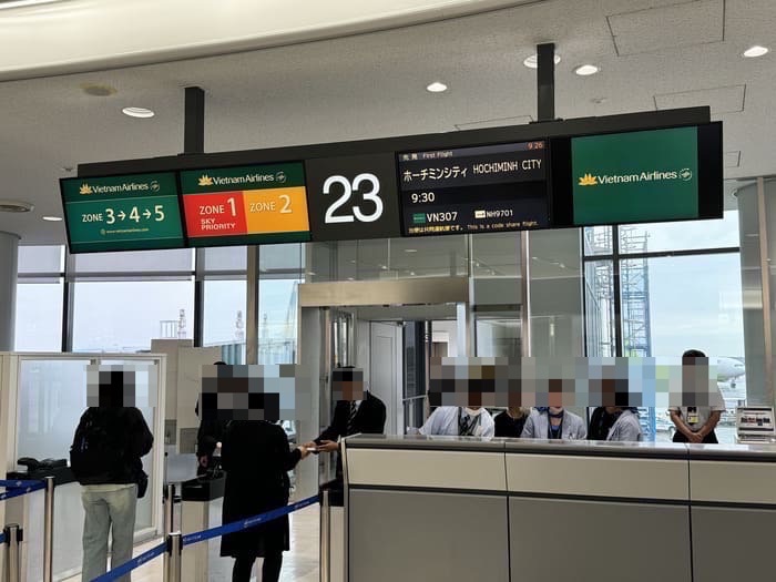チェックインは成田空港第1ターミナル北ウイングのベトナム航空専用カウンターで行われます。