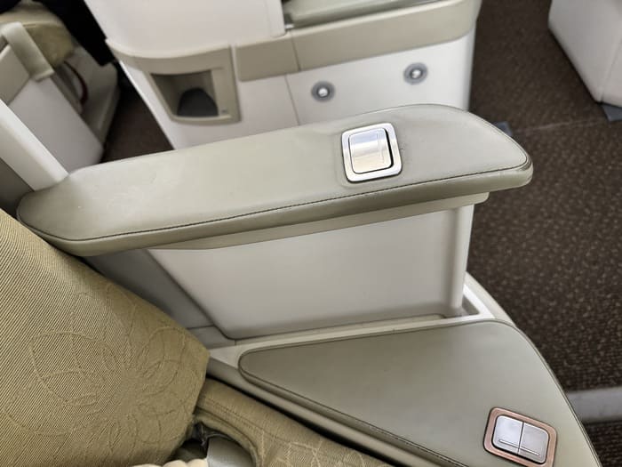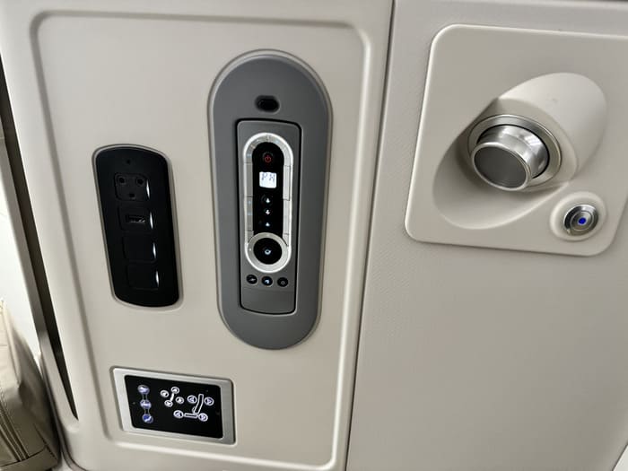 シートの操作ボタンや読書灯、USBポートなどが手の届く位置に配置されています。