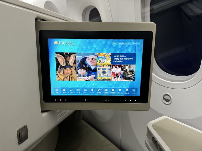 機内エンターテインメントは英語・ベトナム語を中心に、映画・音楽・ゲームが幅広く用意されています。